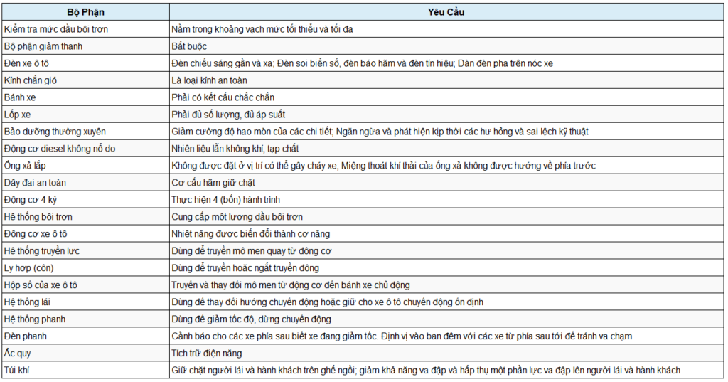 - Luật giao thông đường bộ: quy tắc tham gia giao thông, nhường đường, xử lý tình huống nguy hiểm.