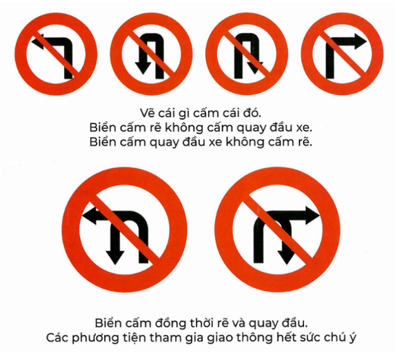 💡 Phân biệt biển cấm rẽ và cấm quay đầu (Vẽ gì cấm đó).
